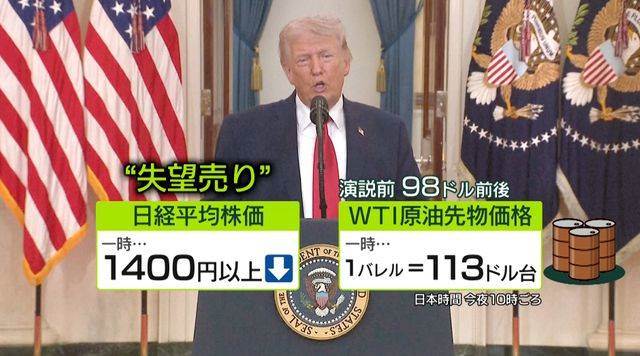 300字以内の概要:2026年4月2日、日本時間午前、トランプ大統領はイランへの攻撃継続を表明。その影響でWTI原油先物価格は1バレル当たり113ドル台に急上昇し、国内株価も一時1400円以上下落した。ホルムズ海峡の封鎖以降、国内ガソリン価格は190円台に達したが、政府補助金により現在は170円に抑えられている。補助金予算1兆1500億円は使い切る時期が情勢次第で5月29日~7月19日と試算されている。さらに、医薬品やナフサといった重要物資の供給にも影響が出ており、政府は緊急タスクフォースを設置。高市首相は節電や節約要請の可能性を示唆した。