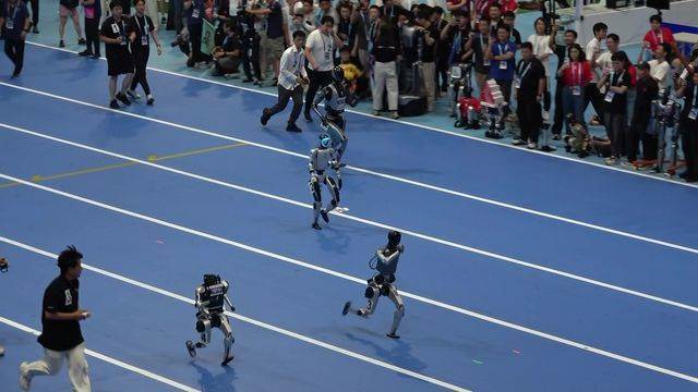 3、人型ロボットありきで、どういう課題を人型ロボットで解決したいのか見えないのが怖い。人型ロボットにトラック競技、サッカー、格闘技をやらせるのも、最終的には軍事ロボットとして兵士の代わりに戦争に参加させるのが目的なのだろう。倫理的にも問題点が多い開発競争と言える。