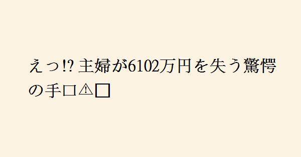 3、始める前に旦那さんへ相談しないと。知らない男とSNSで繋がり、いう事を信じ詐欺に遭う。今後、夫婦関係がどうなるのか気になる。節約しながら蓄えたお金ならブチ切れそうだけどな。しかし6000万あっても強欲になるんだね。金があって強欲で警戒心が緩く無知は詐欺師の絶好のターゲットですね。