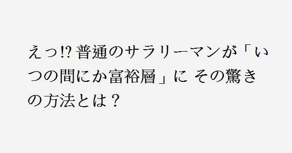 3、会社員だけど自分と家内の株と預金足せば億は超えるでも富裕層って感覚は無い贅沢と言えば趣味で輸入車買ったくらいでも1000万もしないモデルだしそれ以外は日常生活は極めて普通だよ後は会社いつ辞めてもなんとかなるかなと言う心の余裕はできた結局無駄遣いせずにコツコツ投資とかやってきた人がそうなってるからあんまり生活は変わらないんじゃないかな