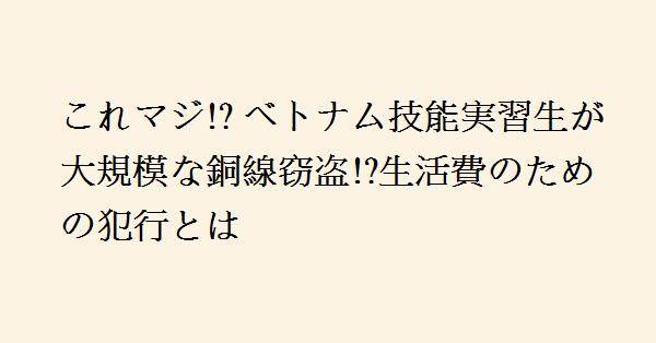 盗んだ銅線は愛知県の買い取り業者に売却されていたが、指示役は既にベトナムに出国しており、捜査は難航した。