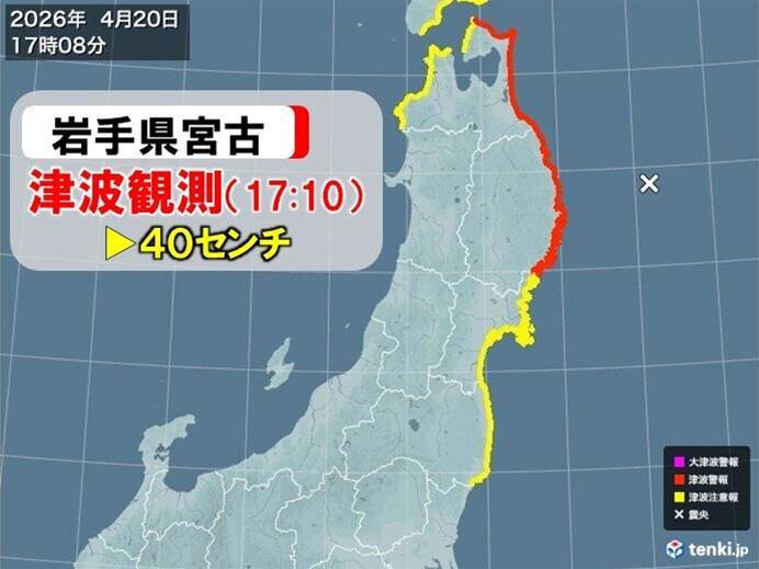 20日午後5時10分、岩手県宮古で津波が観測され、沿岸地域に警報が発表されました。最大波高は久慈港で0.8m、宮古で0.4mなどを記録しています。警報対象地域は北海道太平洋沿岸中部、青森県太平洋沿岸、岩手県で、地域住民には高台への避難が要請されています。観測状況は時間ごとに更新されており、現在の最大波高は浦河で0.4mです。津波の規模は比較的小さいものの、警報解除まで安全な場所での避難が呼びかけられています。